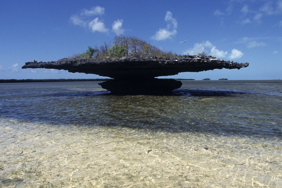 Aldabra Atoll, en el Océano Índico, Seychelles, es el segundo atolón coralino más grande del mundo (el más grande intacto), con arrecifes vibrantes de 150 km² que albergan 1,000 especies de peces y corales endémicos como el Ctenella chagius, un coral cerebral que brilla en tonos rosados.